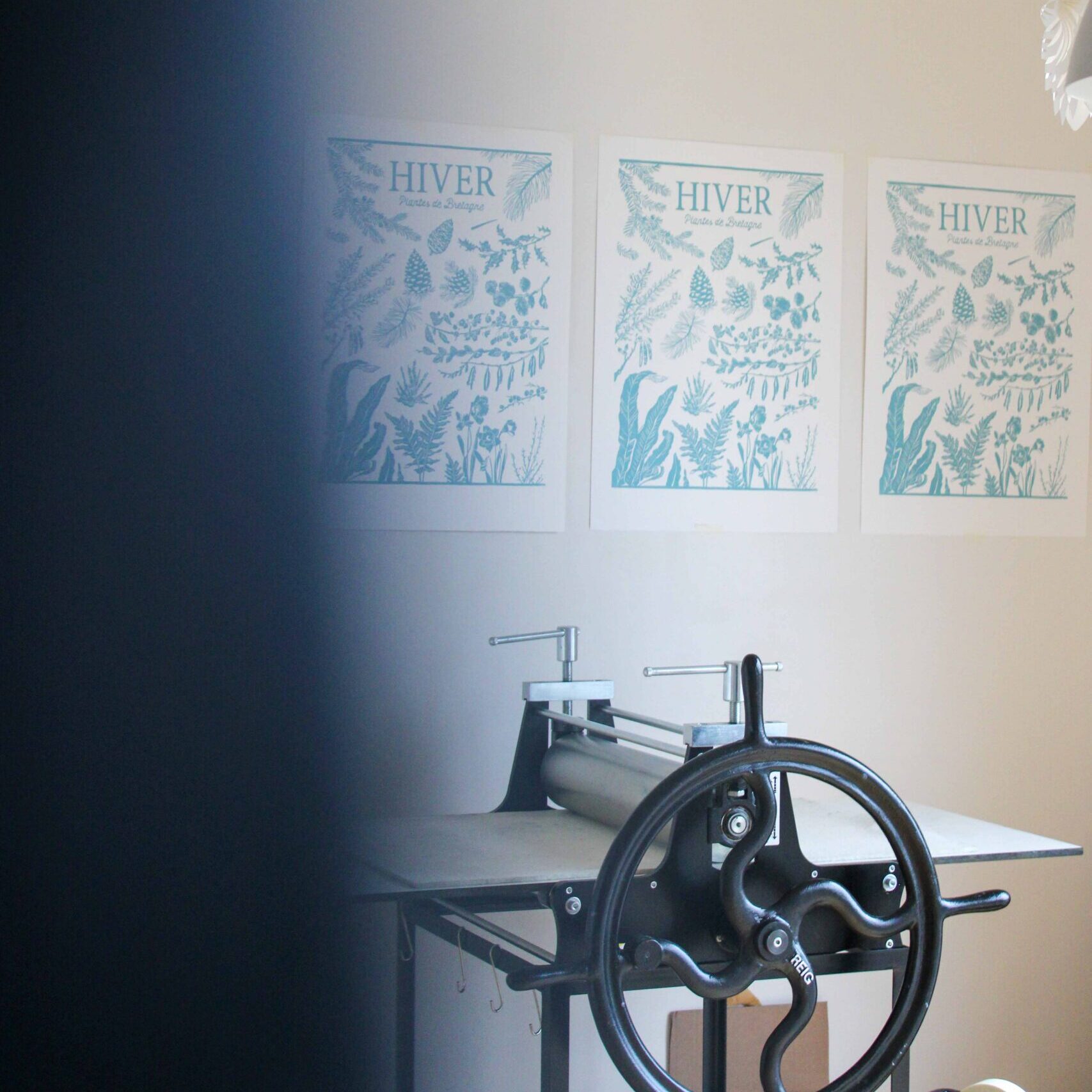 Chaque linogravure de la série a été soigneusement imprimée grâce à ma presse d’atelier 🎨