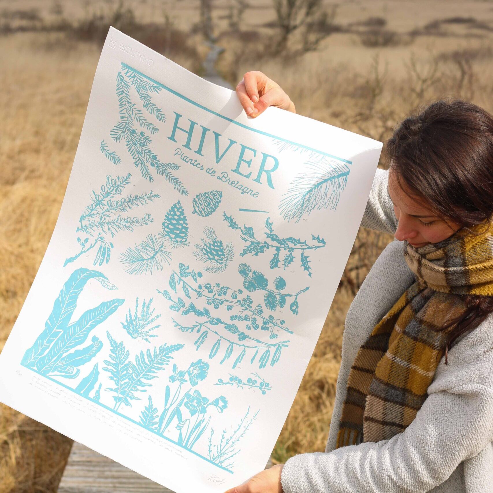 La linogravure ‘Plantes de Bretagne’ a été imprimée en série limitée de 50 tirages. Chaque exemplaire de la série a été soigneusement imprimé à la main dans mon atelier, à Plougastel-Daoulas (📍 Finistère).